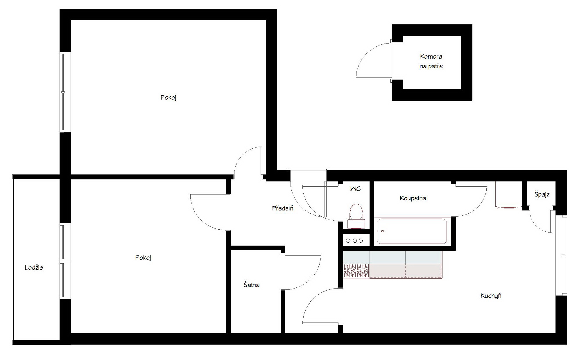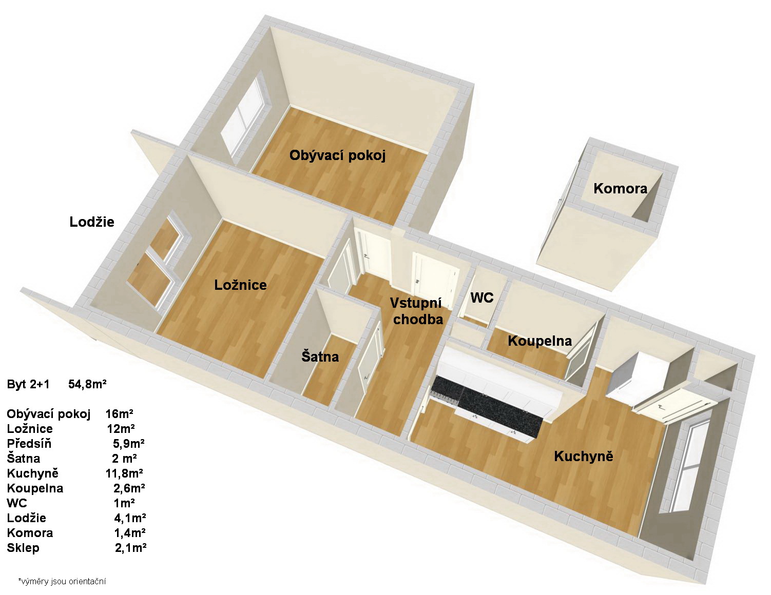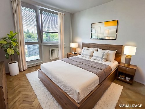 Byt o ploše 54,8m² je v osobním vlastnictví a v původním stavu, včetně umakartového jádra, můžete jej tedy rekonstruovat podle vlastních představ a vkusu. Pokoje jsou neprůchozí a vybavené parketovými podlahami. V předsíni je k dispozici šatna a v podhledu další úložné prostory. Z lodžie je krásný ničím nerušený výhled.