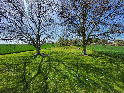 Pozemek plný vzrostlých stromů lze také koupit jako celek o výměře 2192 m2, nebo pouze její část, na základě dělení pozemku na prac. ozn. pozemek 1 a pozemek 2, viz zákres v inzerci. Elektřina je k dispozici na pozemku 2.
